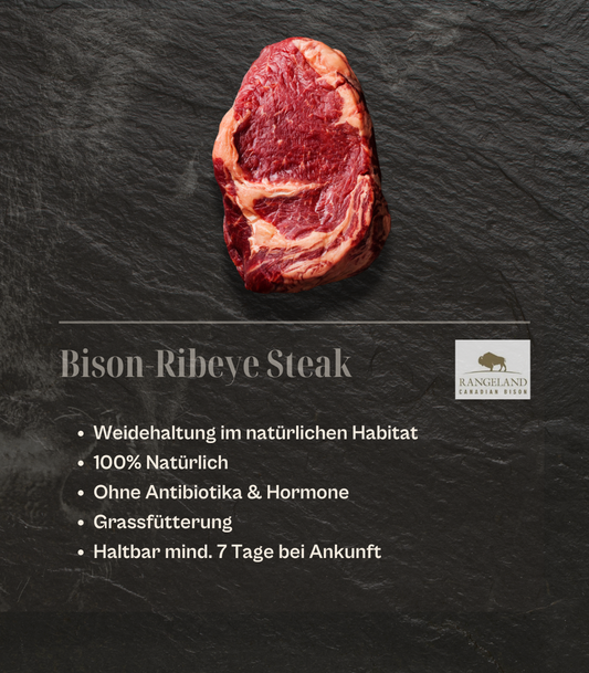 Rangeland-Bisons leben in ihrer natürlichen Umgebung und ernähren sich von wildem Gras. Diese extensive Haltung respektiert das natürliche Verhalten der Tiere und gewährleistet sowohl ihr Wohlbefinden als auch die Qualität des Fleisches.